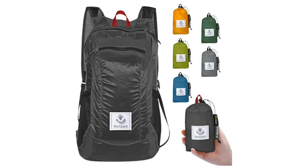 We like this bag over any other day packs because it packs down VERY small when you aren’t using it. It has a small bag attached to the inside and it packs into itself. We use this for day trips, grocery shopping, and as a second bag when airlines allow a personal item and carry-on bag.